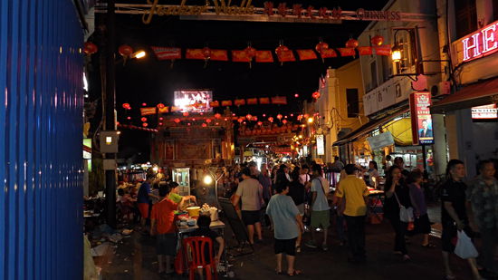 Anstelle 2 Stunden, dauerte die Fahrt 4 Stunden. In Ipoh angekommen, konnten wir dann auch in einen anderen Bus umsteigen, um die weiterfahrt nach KL anzutreten. Diese Fahrt ging normal vonstatten, wir kamen 3 Stunden später in KL an. Doch wir mussten feststellen, dass es in KL mehrere Busbahnhöfe gibt und wir am falschen strandeten. Somit machten wir uns auf den Weg dorthin. Am Richtigen Busbahnhof angekommen, buchten wir ein Ticket nach Melaka, welch ein Glück 30 Minuten später fuhr der Bus bereits los. Unterwegs stoppten wir plötzlich und sahen, dass ein anderer Bus eine Panne hatte und Hilfe benötigte. Wir nahmen diese Personen mit und die Fahrt ging weiter. Um 19 Uhr kamen wir dann in Melaka an, suchten den Bus in die Stadt, wo wir dann um 19:45 Uhr auch ankamen. Jetzt ging es auf die Suche nach einer Unterkunft, das sich als nicht ganz so einfach erwies, denn es war Samstagabend und viele Unterkünfte waren bereits ausgebucht. Um 21 Uhr fanden wir dann eine passende Unterkunft. Gleich ging es auch los um den Nachtmarkt in Melaka unsicher zu machen, der es jeden Freitag und Samstagabend gibt.