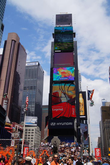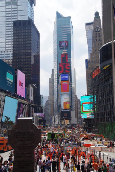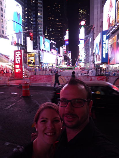 Am Newark Flughafen gaben wir unser Auto zurück, es verlief alles bestens. Wir waren froh, dass wir während der Weltreise mit keinem der Autos und Camper grössere Probleme hatten. Nach etwas suchen, fanden wir den Olympia Expressbus der einem direkt an den Times Square fuhr. Für 16 Dollar pro Person buchten wir diesen Bus und 45 Minuten später kamen wir an. Mit unseren Rucksäcken kämpften wir uns durch die Menschenmenge bis zu unserem Hotel, dieses liegt an der 49igsten, eine super Lage. Da wir noch nicht in unser Zimmer konnten gaben wir unser Gepäck ab und liefen sofort los um den Times Square zu inspizieren, leider befand sich davor eine grosse Baustelle.