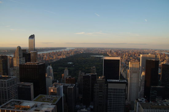 Unser Ticket für den Top of the Rock war auf 19.05 Uhr datiert, exakt um diese Zeit wurden wir mit vielen anderen Touristen ins Rockefeller Center eingelassen und 30 Minuten später waren wir oben. Wow es war gigantisch, wir konnten den Blick über die Stadt sowie den Central Park bei Tageslicht, bei Sonnenuntergang und im Dunkeln geniessen, es war einfach super. Am eindrücklichsten war aber der fast 4km lange und 800m breite Central Park von oben zu sehen. Eine riesige Grüne Fläche inmitten von Manhattan, umzingelt von vielen Hochhäusern. Von oben war ebenfalls das Schachbrettartige Strassennetz gut zu sehen.