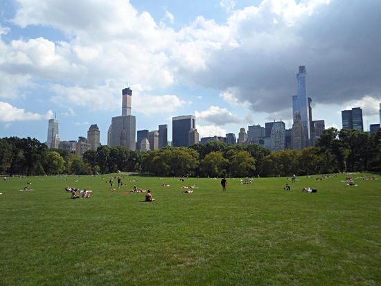 Weiter ging die Fahrt zum Central Park, wo wir den Bus verliessen und die Füsse wieder aktivierten. Dieser schön gepflegte Park lädt zum Verweilen ein. Wie liefen einige Sehenswürdigkeiten ab. Nach einer Weile fanden wir eine gemütliche Parkbank mit gutem Blick auf das Geschehen im Park. Es machte uns Spass die Leute zu beobachten, Musikanten, Künstler, Schulklassen die sich auf dem Baseballfeld vergnügten und natürlich die berühmt berüchtigten "Dogwalkers". Das Foto vom John Lennon Memorial durfte nicht fehlen und 15 Minuten später waren wir wieder in der Hektik vom Times Square angekommen.