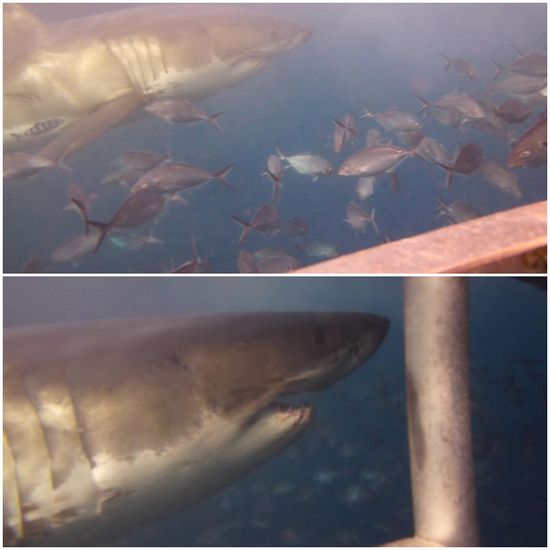 Das erste Mal einem Weißen Hai Auge in Auge zu begegnen. Ganz ruhig, angetrieben durch das gleichmäßige Bewegen der Schwanzflosse, bewegte er sich auf den Käfig zu, schwamm langsam vorbei, das schwarze Auge taxierte ganz genau das Innere im Käfig.