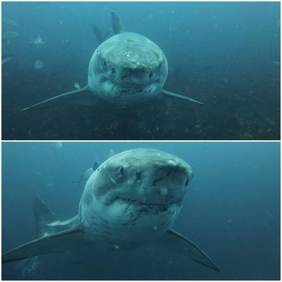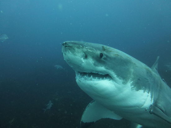 Aber das ist alles kalter Kaffee, sobald man das erste Mal in das vermeintlich diabolisch grinsende Gesicht des weißen Hais vor den Neptun Islands blickt!