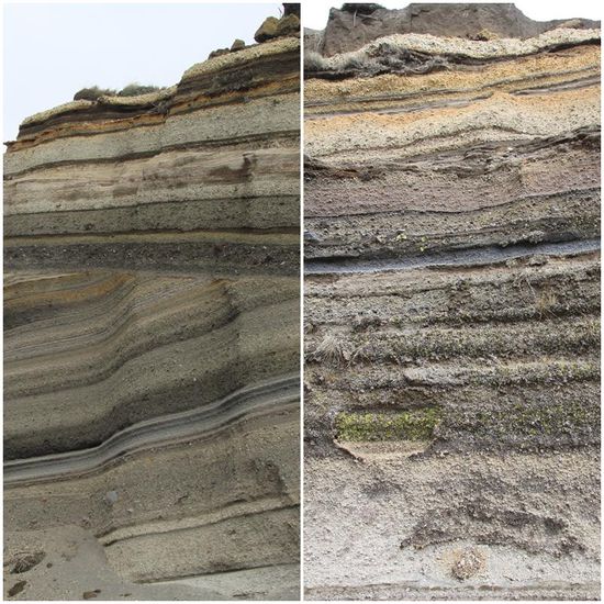 Die gesamten Anden sind das Produkt der Plattenverschiebung. In den einzelnen Sedimentschichten könnte ein echter Geologe bestimmt total spannende Dinge ablesen. Wir belassen es dabei, dass wir uns sagen, dass wir die grau bis schwarzen Schichten wohl Ausbrüche des Chimborazos gewesen sein müssen