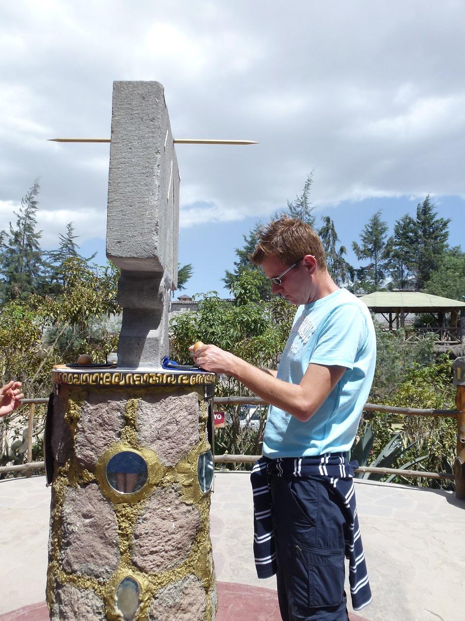 Auch ein rohes Ei auf einem Nagel auszubalancieren, was nur auf dem Äquator und keinen Meter nebendran funktioniert, will niemandem aus unserer Gruppe gelingen, aber es ist gemäß unserem Guide heute auch extrem windig und morgens klappt es auch besser als nachmittags.