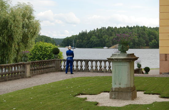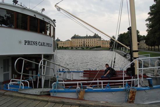 Am nächsten Tag ging es wieder mit dem Schiff zum Schloß Drottningholm. Etwas unterhalb des Campingplatzes lag die Anlegestelle. Durch ein Signal (Semafor) mußte man anzeigen, daß man zusteigen möchte. Dann ging es durch die Schären zum Schloß, wo Königs wohnen. Wir wollten uns nicht nur den Park ansehen, sondern auch das Schloß und das China-Schloß, das weiter hinten im Park liegt. Es gibt noch eine ganze Reihe andere Gebäude, darunter auch das alte Theater. Es wurde 1766 gebaut und war bis zu Gustaf IIIs Tod 1792 in Betrieb. Danach geriet es vollkommen in Vergessenheit, bis es 1921 zufällig wiederentdeckt wurde. Die einzigartige Szenenmaschinerie ist ganz aus Holz, wird per Hand bedient und ist vollständig erhalten. Heutzutage wird es wieder regelmäßig benutzt. Hier