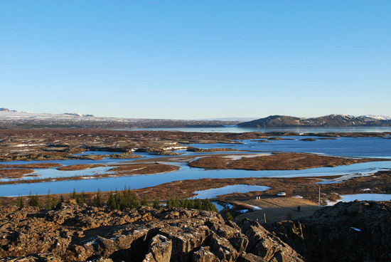 Auch geologisch ist Thingvellir ein ganz besonderer Platz: Genau hier treffen die tektonischen Platten von Nordamerika und Europa überirdisch und somit sichtbar zusammen. Einzigartig weltweit.