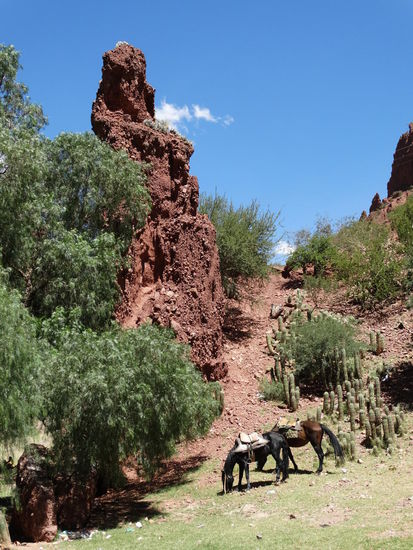 Etwa 1 1/2 Stunden hinter der Grenze zu Argentinien liegt das schöne Städtchen Tupiza in Bolivien. Der Ort ist eingerahmt von Felsen in den verschiedensten Rottönen.
