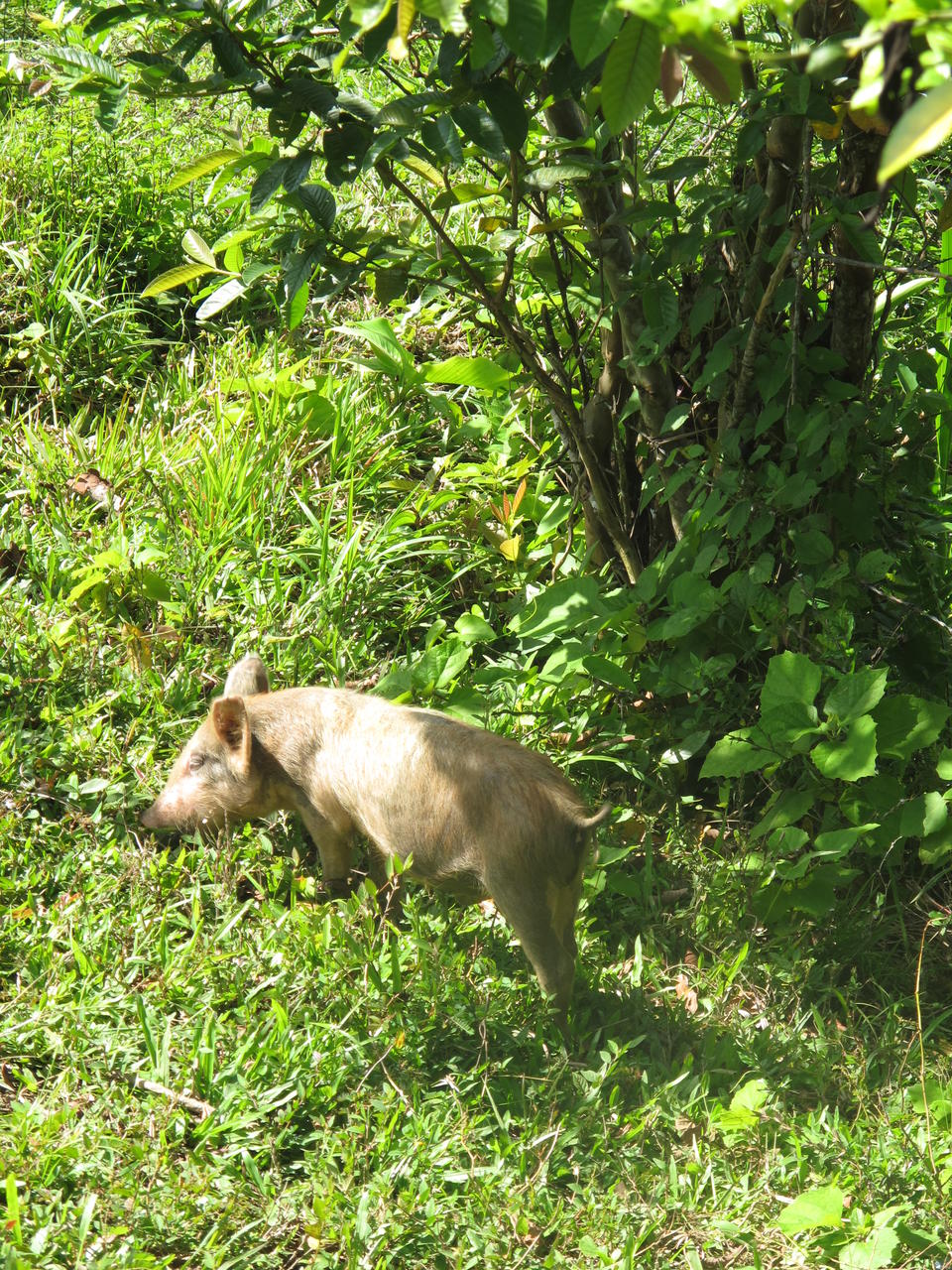 Wie oben zu sehen ist war das letzte Stück rauf in die Sierra Maestra ziemlich steil. Die Fahrer haben dafür extra unten den Allradantrieb angestellt und sind im kleinen Gang hochgebrettert. Sie hatten jetzt Pause und wir Touris liefen mit dem Wanderguide los, auf dem Schild hieß es 3 km bis zur Comandancia la Plata. Dies hört sich nicht viel an, aber da es hier oben doch ziemlich warm war und wir auch noch ein paar Höhenmeter laufen mußten waren die 3 km letztendlich nicht ohne, aber auch nicht unmöglich. Allerdings sollte man schon festes Schuhwerk anhaben und nicht wie unser Guide in Schlappen laufen. Nach ein paar Minuten kamen wir zu einem kleinen Bauernhof, unten zu sehen, auf dem man selbst aber nicht fotografieren sollte. Wir machten dort kurz Rast im Schatten.