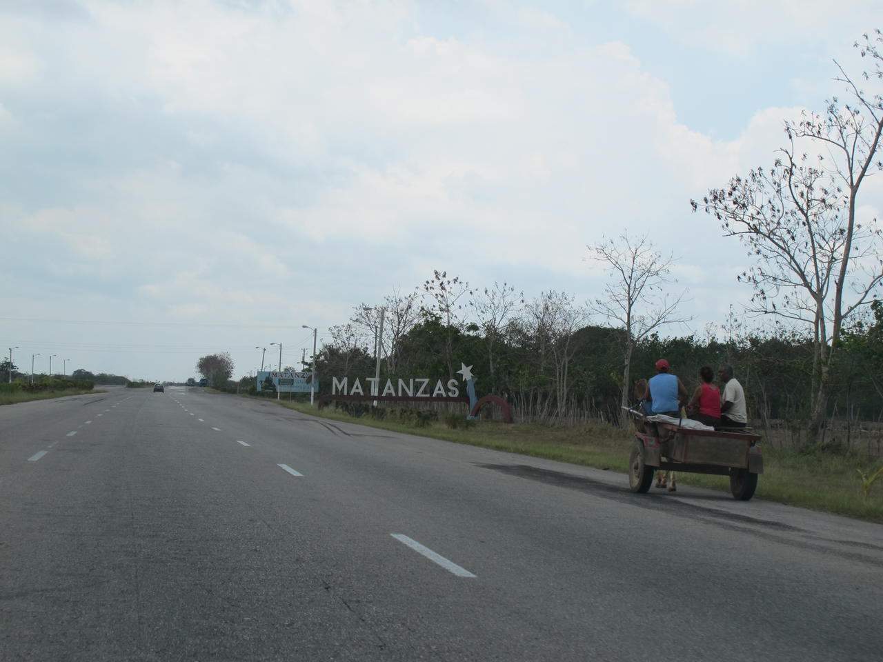 Wir kamen auf der natürlich ziemlich leeren Autopista ganz gut voran, da die Straße einigermaßen in Schuß war. Dies lag wahrscheinlich auch daran, daß hier viele Busse mit Tagesausflüglern von Havanna ins Valle de Vinales und zurück fahren. Im Großraum von Havanna nahm dann der Verkehr aber doch weng zu und die Beschilderung war meistens sogar ganz gut. Da wir hier lieber früher als sonst daheim tanken wollten, hielten wir gleich an einer Tankstelle, die in Havanna auf dem Weg lag. Kurz nach dem Tanken war dann auf einmal die Frau unten mit der Sportjacke direkt vor uns. Dies war wahrscheinlich ein Beispiel einer vielleicht bewußten Kleiderspende an die Kubaner. Scho in der Casa Marilyn stand in ihrem Gästebuch neben ihrem Grußwort der Hinweis, daß man alte Klamotten die man nicht mehr braucht, auch wenn sie scho Schäden haben gerne hierlassen soll, da die Bevölkerung alles gebrauchen kann in diesem blockierten Land. Susanne hatte dort löchrige Socken im Zimmer gelassen Bis auf einen kurzen Schlenkerer kamen wir ganz gut durch den Großraum Havanna und nahmen danach die Autopista 1 Richtung Süden, eigentlicher Endpunkt der Autopista wenn sie mal fertig gestellt worden wäre, wäre Santiago de Cuba gewesen.