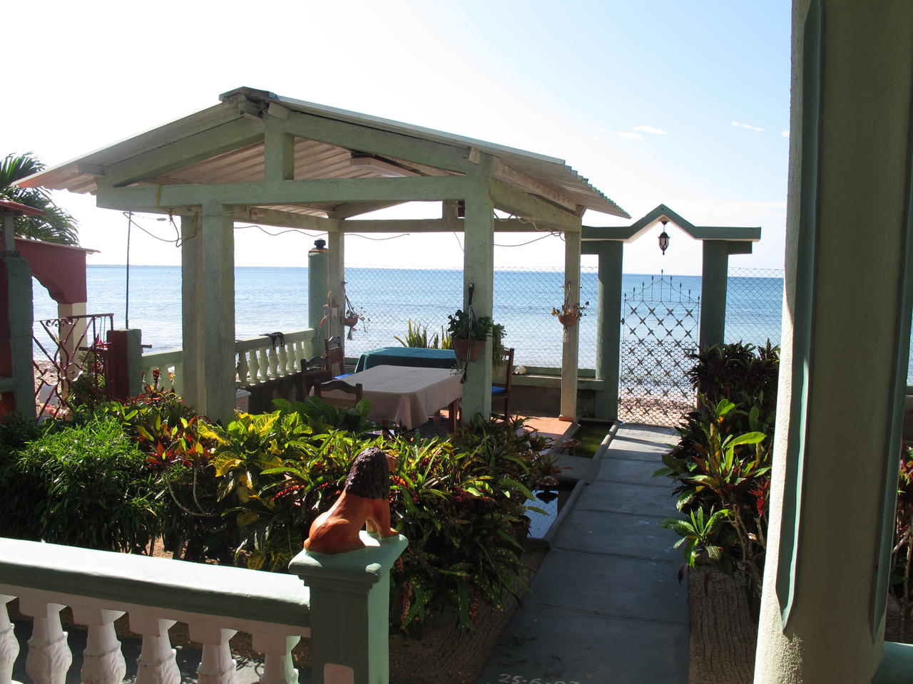 Da wir heut net so weit zu fahren haben bis nach Cienfuegos unserem nächsten Ziel machten wir nach dem Frühstück noch einen kleinen Spaziergang am Strand entlang. Dabei sahen wir immer wieder den Kopf des Münchners im Wasser auftauchen, der nach dem Frühstück schwimmen gegangen ist. Seine Frau meinte, daß er wenns geht jeden Tag schwimmen geht, und dann so eine Stunde lang. Er hat echt ein ziemlich großes Stück der Bucht geschafft. Am Strand entlang kommt man an weiteren Casas vorbei, die einen direkten Zugang zum mehr haben. Manche hatten auch für ihre Gäste eine kleine Bar am Strand gebaut. Bei einem rostigen Wrack, welches hier einfach liegen gelassen wir kehrten wir schließlich wieder um. Es war durch das strahlende Wetter scho wieder ziemlich warm, so daß man sogar trotz der kleinen Brise am Meer ins Schwitzen kam. Kurz vor unserer Casa sahen wir dann auch die Münchnerin weng im Wasser plantschen und gingen selbst nochmal weng mit den Füßen rein.