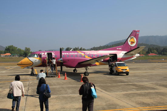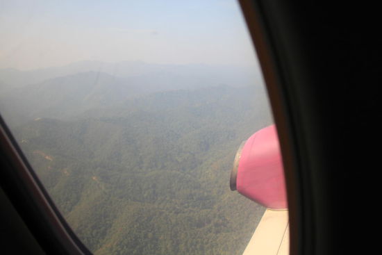 Wir fliegen mit der Propellermaschine recht niedrig. So hat man einen schönen Ausblick und 35 Minuten später sind wir in Chiang Mai.