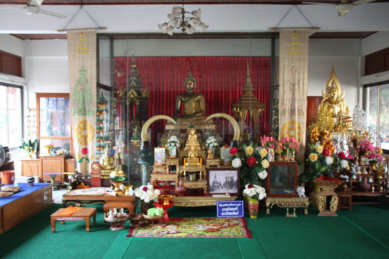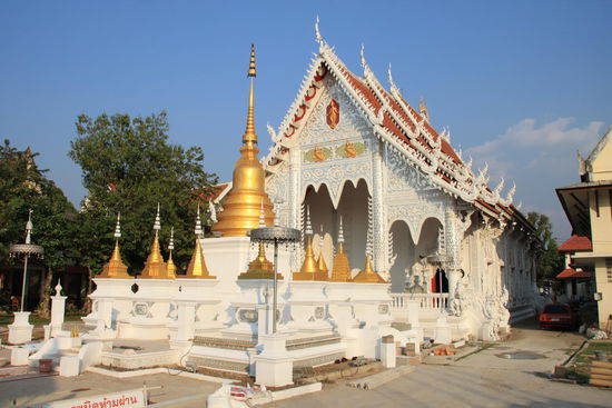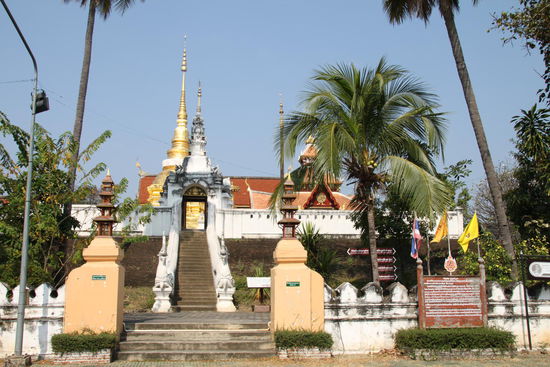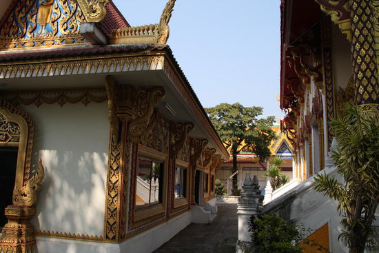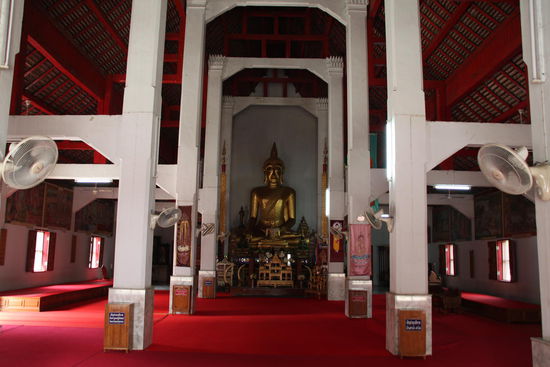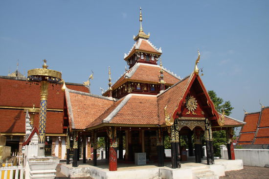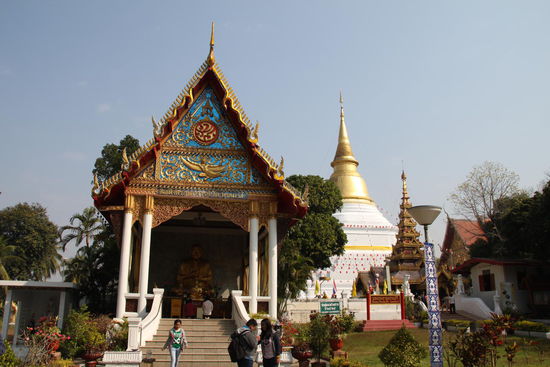 Während ich mir den schönen Tempel anschaue sehe ich, dass wohl höherer Besuch (in dunklen Anzügen) von Mönchen durch den Tempel geführt wird. Hier soll der Jadebuddha 32 Jahre lang untergebracht gewesen sein bevor er über Chiang Mai nach Bangkok gekommen ist, wo er heute im War Phra Kaew als Staatsheiligtum steht.