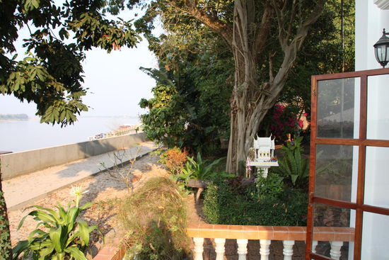 Wir teilten uns ein Tuktuk wobei der erst 100 von jedem wollte. Am Ende waren es dann 100 insgesamt. Und auch das war wahrscheinlich noch zu viel. Das Mut Mee Gästehaus hat eine schöne Gartenanlage am Mekong und damit eine angenehme Atmosphäre. Außerdem bietet es wohl diverse Service für Backpacker wie Fahrradvermietung und Bücherladen. In meinen Augen ist es absolut überteuert. Ich zahle 950 B für das sogenannte Luxuszimmer mit Terrasse zum Mekong. Das Zimmer ist relativ klein und obwohl ich die Fenster zu lasse, habe ich Nachts jede Menge Moskitos drin. Es ist meine erste Unterkunft in Thailand in all meinen Reisen, bei denen es kein kostenloses Trinkwasser auf dem Zimmer gibt. Ich will nicht hoffen, dass so etwas schule macht. Frühstück ist bei dem Preis ebenfalls nicht enthalten. Dafür bekomme ich beim Einchecken gleich einen Stadtplan in die Hand gedrückt.