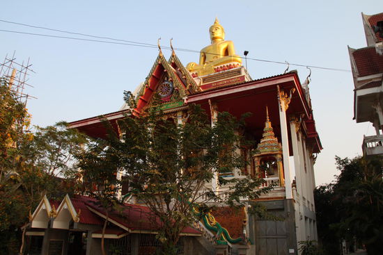 Zur vereinbarten Zeit, wieder aufzubrechen meint sie aber, ihr Schutzengel habe für heute genug geleistet und sie kommt lieber doch nicht mit. Mir ist das auch recht, so kann ich spontaner entscheiden irgendwo zu halten oder mal etwas schneller über die Bundesstraße zu fahren, wo man doch als einmal von ganz links nach ganz Rechts rüber muss oder umgekehrt. So schaffe ich es, in den 1,5 Stunden die mir bis zur vereinbarten Abgabezeit den Wat Sri Chom,