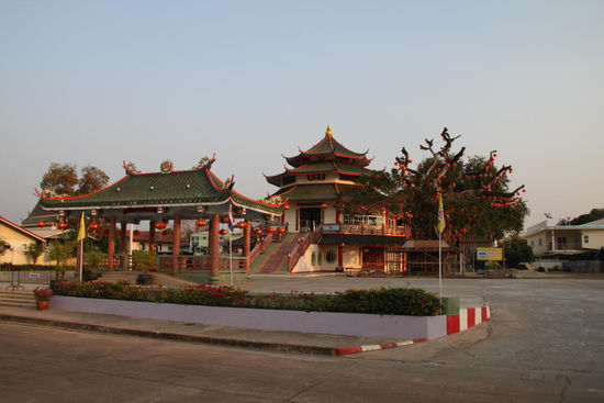 Gegen 21:00 sind wir zurück und suchen die Gaia Bar. Wir sind rechtzeitig da um noch ein Getränke in der Happy Hour zu bekommen, was aber auch nur 10 B pro Getränk ausmacht. Gegen später setzt sich noch ein Pärchen zu uns, Annabell und Volker die aus Heidelberg kommen und vor allem mit geliehenen Motorrädern hier unterwegs sind. Als nächstes wollen sie versuchen, in Laos Maschinen zu bekommen. Ich wollte mir für morgen einen Roller leihen um den Skulpturenpark hier und den einen oder anderen Tempel anzuschauen. Den haben die beiden schon gesehen, Nell aber noch nicht, so machen wir aus, dass wir uns dann besser ein TukTuk teilen. Nell ist heute Morgen mit dem Nachtzug aus Bangkok angekommen und deshalb geht sie zeitig schlafen. Mit den anderen beiden unterhalte ich mich noch eine Weile. Irgendwie kommen wir auf Barbequerestaurants und die beiden meinen, sie hätten heute ein Stück den Mekong entlang einige gesehen, waren aber noch nie in einem Essen. Daraufhin schlage ich vor, dass wir morgen Abend gemeinsam hin gehen. Ich frage Nell morgen, ob sie auch mit will. Die Dinger machen in der Gruppe am meisten Spaß.