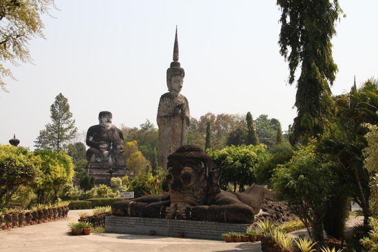 Zum Salakaewkoo, dem Skulpturenpark sind wir eine ganze Weile unterwegs und ich muss immer wieder einmal den Stadtplan zu Rate ziehen. Die Straßen sind teilweise recht stark befahren und ich schaue immer mit einem Auge im Rückspiegel nach Nell.