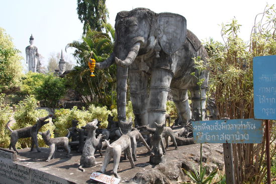 Der Park kostet für Ausländer 20 B, also fast nix und ist unbedingt sehenswert. Der hier ist noch etwas verrückter als der in Laos drüben. Beide sind ja vom gleichen Künstler. Wir halten uns hier mindestens zwei Stunde auf und ich bin inzwischen froh, dass das mit dem TukTuk nicht geklappt hat.
