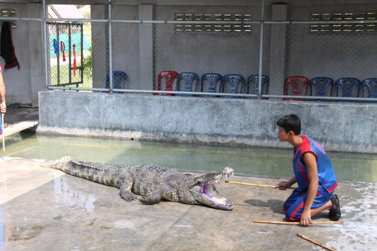 Auf dem letzten Stück Weg sind wir noch an einer Krokodilfarm vorbei gekommen die sie gar nicht gesehen hat. Wir halten dort an und nachdem niemand da ist, der den Eintritt kassiert, gehen wir kurz rein. Was wir da drin sehen ist aber so armselig, dass wir sofort wieder gehen. Da muss man wirklich nicht drin gewesen sein.