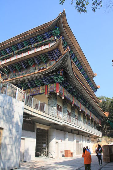 Tja und damit hab ich die Wartezeit von vermutlich 10 - 15 Minuten auf 1,5 Stunden erhöht. Während nämlich wohl die meisten mit einer Glasbodenkabine fahren wollen, ist nur jede 10te oder so eine. Das sagt einem bloß vorher keiner. Diese gute Stunde hat dann gereicht, dass die Sonne nicht mehr von vorne, sondern von links hinten gekommen ist. Damit waren gute Fotos nicht mehr möglich. Meine dringenden Empfehlung daher, den Besuch bei Lo Pin Kloster so früh wie möglich ansetzen wobei die Seilbahnen an Sonn- und Feiertagen um 09:00 starten, aber da umso mehr los ist. Unter der Woche starten sie um 10:00.
