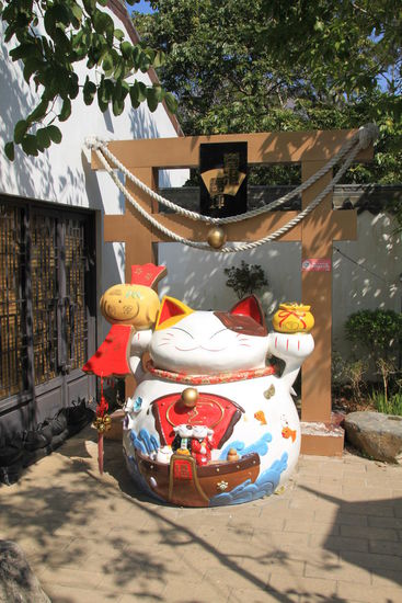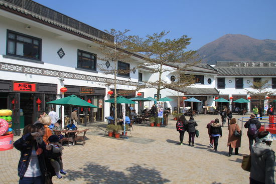 Vor dem Kloster befindet sich ein kleines künstliches Dorf mit Restaurants und Souvenirläden. Nebenan gibt es einen Busbahnhof und hier steht auch schon ein Bus nach Tai O bereit.