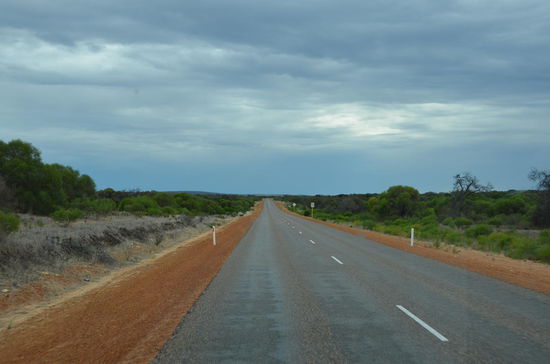 Wir durchfahren einsames Gebiet und erreichen bald einen berühmten Spot, den Pink Lake. Bilder sahen im Internet echt eindrücklich aus und tatsächlich sehen wir durch Büsche und Bäume einen rosa Schimmer. Leider bleibt es dabei, da wir keinen Weg an den See finden. Schade! Es ist übrigens ein Salzsee und für die pinke Färbung sind Algen zuständig. Nun, von touristischer Ausschlachtung kann man wahrlich nicht sprechen.