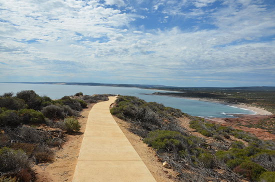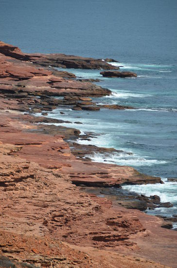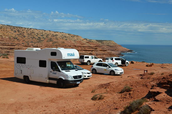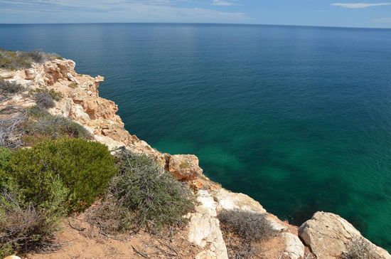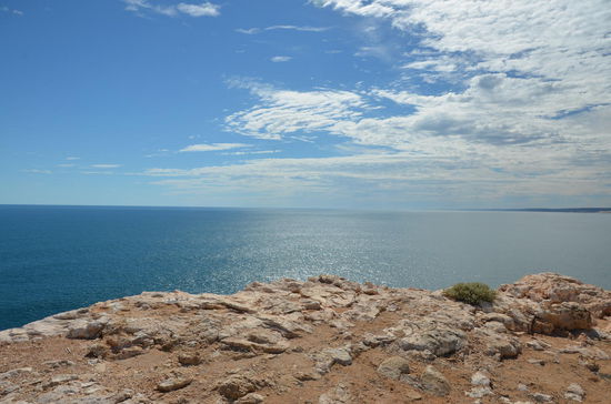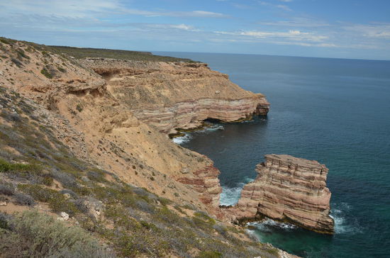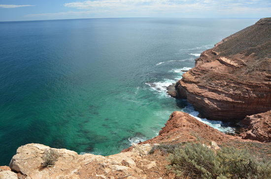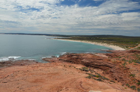 Unser letzter Punkt heisst Red Bluff. Ein längerer Wanderweg führt uns wiederum hinaus auf malerische Klippen. Rechterhand zeigt sich wiederum ein eindrücklicher Küstenabschnitt mit ins Meer ragenden Klippen, linkerhand der Red Bluff Beach, der Hausstrand des Städtchens Kalbarri. Die Sonne brennt nun gnadenlos vom Himmel und wir kommen ganz schön ins Schwitzen während unseres Rundgangs auf Red Bluff und wir sind froh, als wir wieder in den klimagekühlten Camper einsteigen können. Wir merken deutlich, dass wir uns immer mehr den tropischen Gebieten Nordaustraliens nähern.