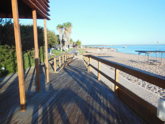 Heute gönnen wir uns ein Frühstück im Hotel. Es hat ein Buffet, doch lässt die Qualität zu wünschen übrig. Aber was soll's! Zurück beim Camper setzen wir uns draussen unter unsere Markise. Die Sonne brennt ziemlich heiss zu uns hinunter. Jürg liest, ich schreibe. Um elf Uhr begeben wir nochmals an den Strand. Wir erblicken noch zwei Flossen, die sich grad von der zweiten Fütterungswellen verabschieden. Im Shop gibts ein Eis, das wir im Schatten von Palmen geniessen.