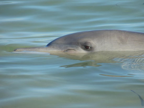 In diesen 3 1/2 Stunden sehen wir erstaunlich viele Tiere: immer wieder Delphine, zwei weitere eindrucksvolle Mantas und plötzlich die Köpfe von mehreren Seekühen. Es ist wirklich ein toller Ausflug und um vier Uhr sind wir wieder im Resort zurück.
