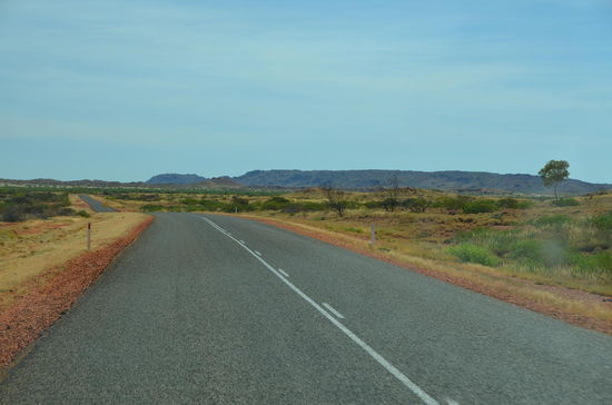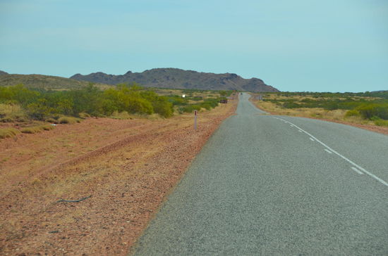 Die Fahrt durchs endlose Outback geht weiter. Die Landschaft, die bisher vorallem durch eine Busch- oder rote Wüstenlandschaft bestanden hat, ändert sich rapid. Wir erreichen eine gebirgige Landschaft mit langgezogenen Wüstengebirgen von einer Höhe bis 300 Metern über Meer. Der sonst schnurgerade Highway wird kurvig und wir durchqueren diesen Gebirgszug. Es ist spannend und eine willkommene Abwechslung zum sonstigen Landschaftsbild.