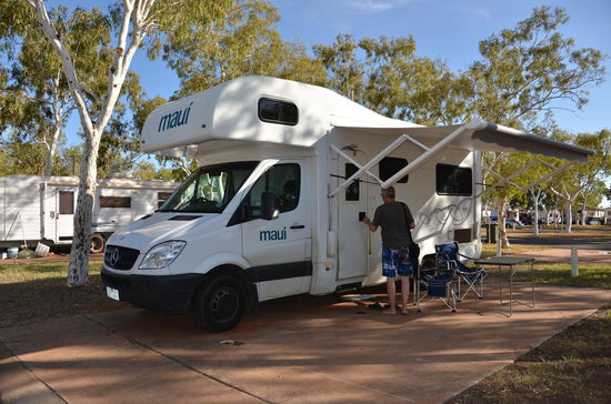 Fürs Abendessen haben wir uns leckere Steaks gekauft. Dazu gibts noch den Rest des Teigwarensalates von gestern und natürlich ein feines Glas Wein. Die Nacht wird tropisch warm. Wir merken deutlich dass wir uns immer mehr dem tropischen Teil Australiens nähern. Die Temperaturen fallen nachts kaum mehr und die Luftfeuchtigkeit ist hoch. Duschen ist insofern interessant als dass man die Dusche genauso nass verlässt wie man hineingegangen ist. Einzig die Klimaanlage im Camper bringt noch ein wenig Kühle und die geniessen wir dann doppelt. Doch fürs Schlafen schalten wir diese ab. Einerseits finden wir es ungesund und andererseits macht sie ziemlichen Lärm. Bevor wir dann schlafen gehen, kühlen wir noch so richtig runter. In der Nacht lassen wir dann möglichst die Fenster geöffnet, dass der irgendwann aufkommende Nachtwind ein wenig Kühle bringt. Für mich beginnt hier langsam das schwierige Klima, denn eigentlich mag ich Hitze und Feuchtigkeit gar nicht. Aber was uns nicht umbringt, macht uns stark...