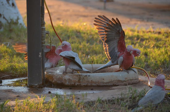 Zurück beim Camper gibt es einen gemütlichen restlichen Nachmittag. Lustig sind die Rosakakadu's, die sich am Wasserhahn um die wenigen Tropfen balgen.