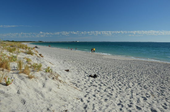 Dann geht's endlich ans Meer. Nach monatelanger Kälte und einem verregneten ebenso kalten Frühlingsbeginn geniessen wir das Meer, den Strand und die warme Sonne doppelt. Wir spazieren den Strand hoch und hinunter, lassen uns die Füsse von den Wellen umspülen und beobachten die Australier bei ihrem sonntäglichen Beachlife. Es ist herrlich!