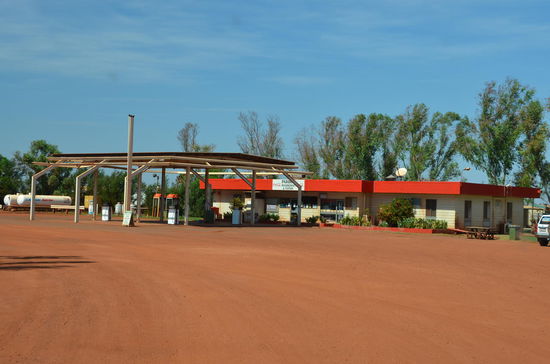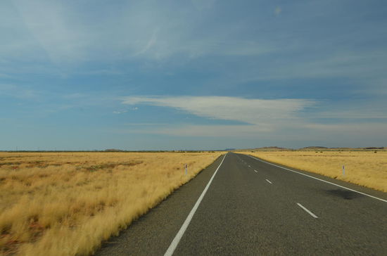 Die heisse Nacht haben wir gut überstanden. Der Morgen begrüsst uns einerseits mit einem blauen Himmel andererseits mit schwarzen Gewitterwolken. Gemütlich frühstücken wir draussen und machen uns um halb neun auf zur nächsten Destination, die 485 Kilometer Fahrt mit sich bringt. In Karratah tanken wir noch auf, danach verlassen wir die Stadt.
