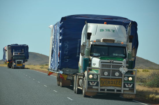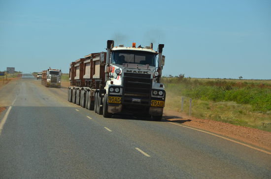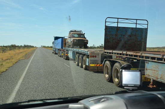 Des öftern werden wir zum nationalen Hindernis und schwerbeladene Roadtrains überholen uns als wären wir mit einem "Döschwo" unterwegs...