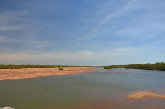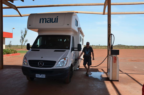Und so fahren wir gemeinsam die letzten 100 Kilometer bis zur Abzweigung zum Eighty Mile Beach. Die letzten 10 Kilometer haben es in sich, sind sie doch unbefestigt. Es schüttelt unseren armen Camper ganz schon durcheinander und wir fürchten schon um die Unversehrtheit unseres Geschirrs. In Namibia fuhren wir 2500 Kilometer unbefestigte Strassen, aber dies 10 Kilometer kosten und weitaus mehr Nerven!