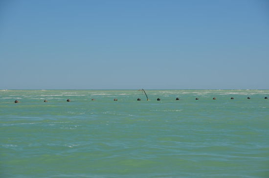 Ein Schiff führt uns auf den Fluss. Die Strömung ist enorm schnell und zieht landeinwärts. Endlich verstehen wir! Broome hat die höchsten Flut-Ebbe-Gezeiten der südlichen Hemisphäre. Über 10 Meter. Der Fluss ist das Meer und die Flut schwabt in einem enormen Tempo hinein. Mitten in der Strömung hat es Seile und daran hängen die Austern, welche durch die enormen Gezeiten immer gut gewaschen werden. Trotzdem braucht es Leute, die die Austern immer wieder aus dem Wasser nehmen und von Hand putzen. Dies ist häufig ein Job für junge Touristen, die Australien im Work-and-Travel-System bereisen. Warum? Austernputzen sei ein Sch...job und die jungen Touristen seien günstige Arbeiter. Alles klar...