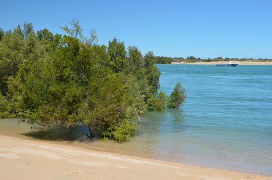Plötzlich kommt unsere freundliche Mona Lisa wieder zu uns und fragt, ob wir ev. einen Bush Man kaufen möchten. Für alle Nicht-Kenner: bush man ist ein australisches Mückenmittel. Wir schauen ein wenig erstaunt drein und Mona Lisa zeigt uns ihre verstochenen Armen. Hier gäbe es leider eine Menge Sandflys und die würden den Gästen das Leben schwer machen. Wir kaufen keinen Bush Man, aber wir essen unser Essen ein klein wenig schneller und verzichten aufs Dessert! Und wie es so ist: wenn man von etwas weiss, das sei könnte, dann hat das Konsequenzen: es fängt uns überall an zu beissen. Dass dies nur Einbildung war erkennen wir am nächsten Morgen, denn wir haben nicht einen Sandfly-Biss. Aber das Wissen, dass es hier von diesen Viechern wimmelt, reicht, dass wir auch auf dem Heimweg immer noch auf der Flucht sind und das Gefühl haben, die Viecher würden uns verfolgen...
