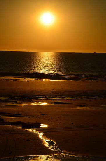 Gegen fünf Uhr bummeln wir an den Cable Beach und geniessen den wunderschönen Sonnenuntergang. Mit uns tun dies viele andere. Es ist wahrlich ein prachtvoller Abend.