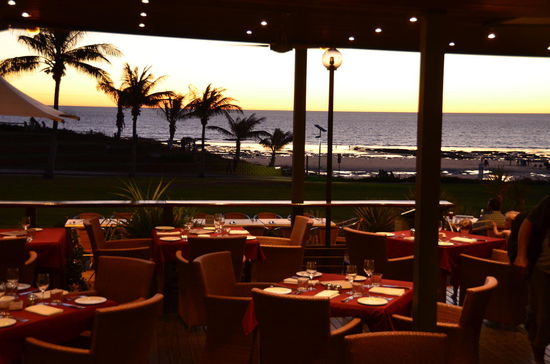 Heute wollen wir das Geld von Vreneli veressen. Mama gibt uns vor jeder Reise einen gewissen Betrag, damit wir dann mal fein essen gehen können. Und heute ist der Abend gekommen. Gleich in Strandnähe hat es ein schönes Restaurant mit einer grossen offenen Terrasse. Sofort erhalten wir einen Tisch und werden aufs Netteste von einer Serviertochter namens Mona Lisa bedient. Nebst einem feinen Drink zum Einstieg, bestellen wir uns Filet Mignon. Der Abendhimmel verfärbt sich in ein wunderschönes Rot und malerisch ziehen zwei Kamelkarawanen vor dem Restaurant vorbei. Es ist eine der Attraktionen vom Cable Beach, dass man auf Kamelen dem Strand entlang reiten kann.