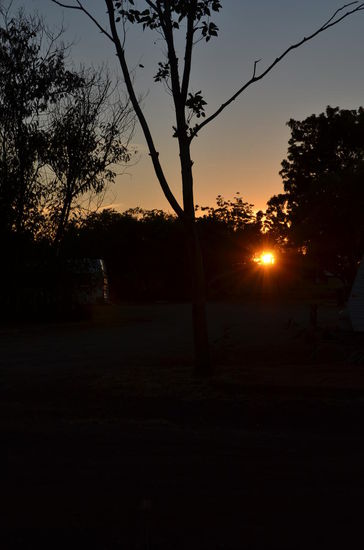 Zum Abendessen gibt es Kühlschrank-Leerete. Unsere Camperzeit geht langsam dem Ende zu und wir wollen nicht Lebensmittel fortschmeissen müssen. Es gibt einen Wok mit Teigwaren, Schinken und Zwiebeln. Die Sonne brennt heiss auf unseren Platz und wir sind dankbar als sie langsam hinter den Palmen verschwindet.