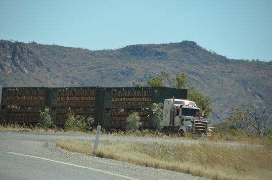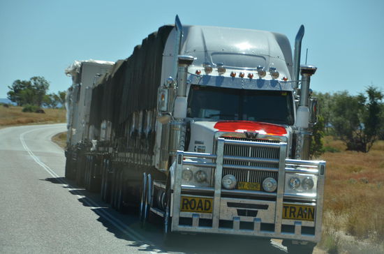 Da sich in diesem Gebiet auch viele Minen befinden, kreuzen immer wieder riesige Roadtrains unseren Weg.