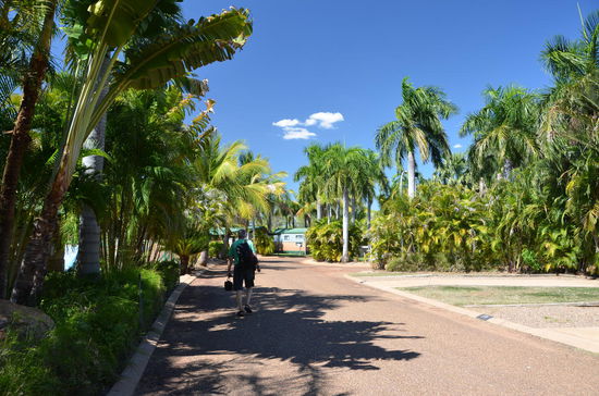 Wir erreichen unseren Caravanpark namens Ivanhoe und erhalten im tropischen Garten einen schönen Standplatz. Es ist heiss und um uns herum hat sich die Vegetation komplett geändert. Statt riesiger Eukalyptusbäumen befinden wir uns in einem Palmenparadies mit tropischen Wasserfällen und überall pfeifen uns exotische Vögel die schönsten Lieder. Ein toller Ort, wenn auch klimatisch nicht grad meine Wohlfühl-Region.