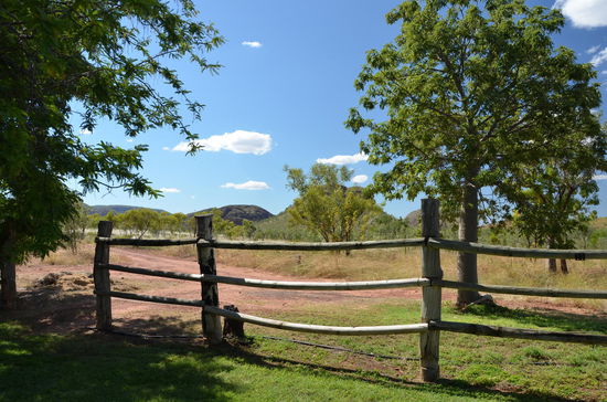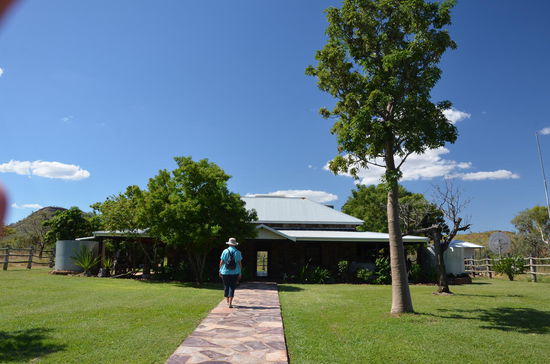 Die Fahrt geht weiter und führt kurvig in die Höhe. Plötzlich biegt der Bus ab und führt uns zu einem schönen australischen Anwesen. Es ist ein kleines "Ballenberg", denn das schöne Haus stand genau dort, wo die Staumauer den Lake Argyle entstehen liess. Man baute Stein für Stein alles ab und hier wieder auf, damit es der Nachwelt erhalten blieb. Denn diesen Anwesen, das Durack Homestead, gehörte Patrick Durack, einem irischen Immigranten und Pionier der westaustralischen Rinderzucht. 1882 gelangte Durack nach einem langen Treck quer durchs Land in dieses Gebiet. Er trieb 7000 Rinder und 200 Pferde von von West-Queensland hierher. Dies dauerte über 3 Jahre. Das muss man sich mal vorstellen: quer durchs Outback!