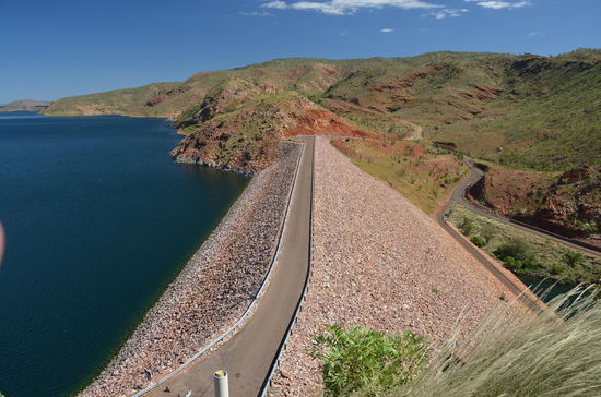 1971/72 entstand der Lake Argyle durch den Bau eines Staudamms am Ord River. Als wir den Erdstaudamm von einem Aussichtspunkt aus sehen, kann ich es kaum glauben, dass dieser nette Erdhaufen eine solche Wassermenge zurückhalten kann. Eine Grande Dixence hat da ganz andere Dimensionen. Wir sind höchst beeindruckt!