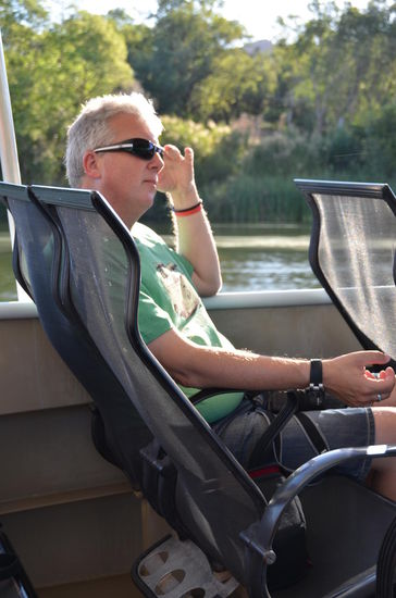 Unsere Fahrt auf dem Ord River geht rasant los. Das ist kein "wir-tümpeln-den-Fluss-runter"-Boot, sondern ein richtig nettes Speed-Boot. Jürg strahlt wie ein Maikäfer. Da kommt Freude auf!