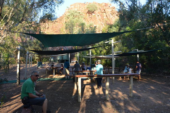 Es wird eine heisse Nacht. Trotzdem schlafen wir einigermassen gut und sogar bis sieben, was schon recht lange ist. Den Tag können wir heute gemütlich angehen. Wir werden von TripleJ erst um halb zwölf abgeholt. So geniessen wir unser Frühstück und sitzen gemütlich draussen und lesen. Es wird heisser und heisser, wahrlich nicht mein Lieblingsklima.