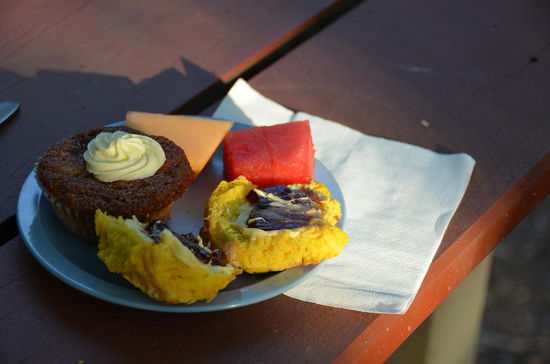 Die Fahrt geht weiter. Manchmal scheinen uns die steilen Felswände zu erdrücken und manchmal teilen sich die Berge zu weiten Täler. Es gibt einen weiteren Halt. Hier dürfen wir das Boot verlassen. Eine kleine Waldlichtung am Rande eines hohen Felsens wurde mit Toiletten, Tischen und Bänken bestückt. Unsere netten Betreuer servieren uns einen richtig feinen Afternoontea mit Scones, Muffins, Tee und Kaffee.
