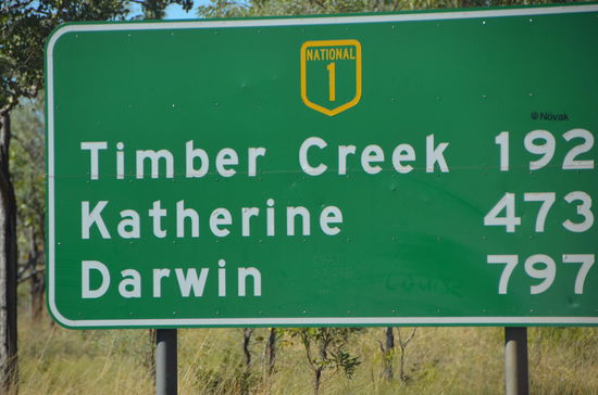 Wir erreichen Timber Creek, ein kleines Städtchen eingebettet in einem grünen Tal. An einer Tankstelle mit Bar und Shop tanken wir auf. Dann gehts weiter.