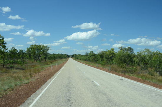 Wir sind schon früh wach und lassen den Tag gemütlich angehen. Nach dem Frühstück machen wir unseren Camper zur Abfahrt bereit und um halb acht geht die Fahrt weiter. Heute haben wir unseren letzten langen Törn vor uns: 510 Kilometer, welche uns ins Northern Territory führen. Bereits nach ca. 80 Kilometern erreichen wir die Grenze und verlassen Western Australia. Willkommen im Northern Territory! So werden uns heute vom Tag gleich mal 1 1/2 Stunde geklaut. Willkommen Zeitzonenwechsel.