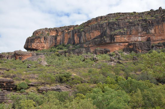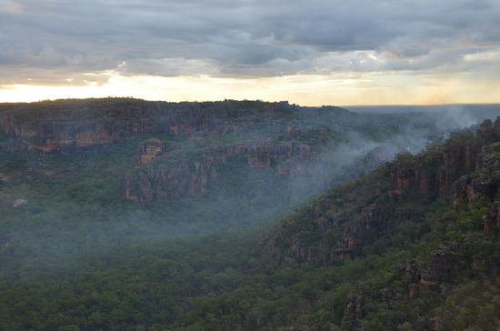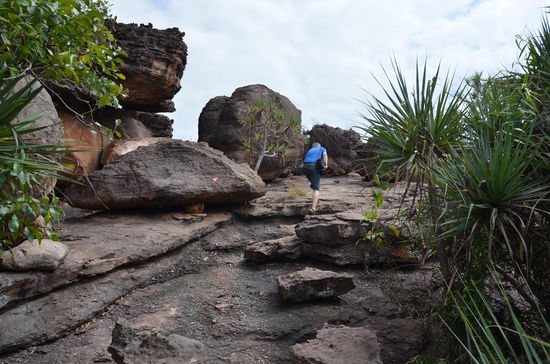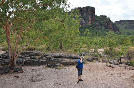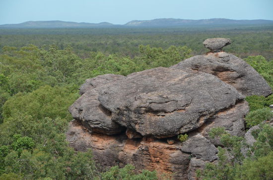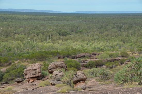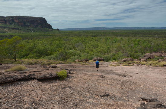 Also machen wir uns zu einer kleiner Bergtour auf und klettern über grosse Felsen 600 Meter hinauf zum Nawurlandja Lookout. Anstrengend aber es lohnt sich! Der Ausblick ist grandios! Den Teil, den wir hier sehen, wird als "woodlands" bezeichnet und lange sitzen wir hier und lassen den Kakadu Nationalpark auf uns wirken.